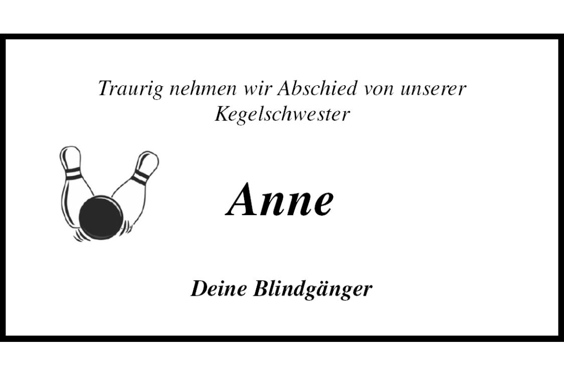 Traurig nehmen wir Abschied von unsererKegelschwester Anne Deine Blindgänger