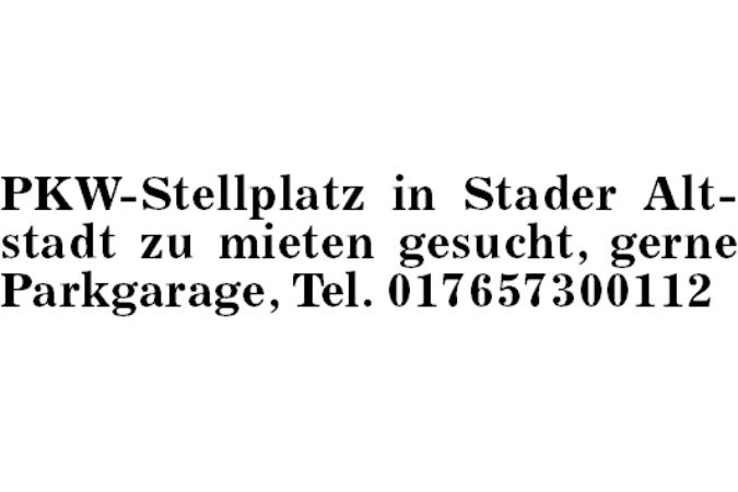 PKW-Stellplatz in Stader Altstadt zu mieten gesucht, gerne Parkgarage, Tel. 017657300112