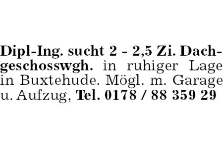 Dipl-Ing. sucht 2 - 2,5 Zi. Dach- geschosswgh. in ruhiger Lage in Buxtehude. Mögl. m. Garage u. Aufzug, Tel. 0178 / 88 359 29