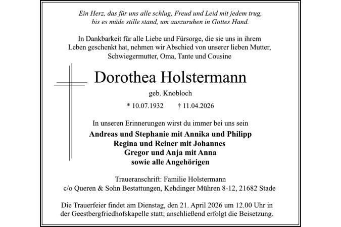 Holstermann, Dorothea, Trauer
