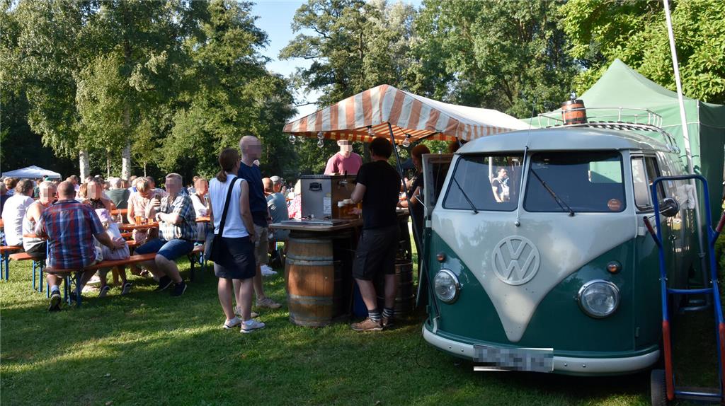 Weil selbst am Abend noch beinahe tropische Temperaturen herrschten, mischte Jens Bunthaus von der gleichnamigen Hamburger Brauerei sein Bier mit Zitronenlimonade. Sein Alster kam bei den Gästen gut an. Ein Hingucker war auch sein kleines, schwarzes Auto, gemütliche 40 Stundenkilometer schnell, mit dem er die Getränke transportiert.