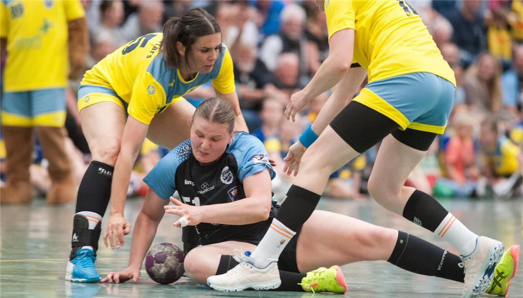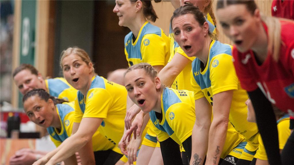 Stefanie Melbeck macht die ins Feld gewechselte BSV-Torhüterin Ylva Tants fest. Foto: Jan Iso Jürgens